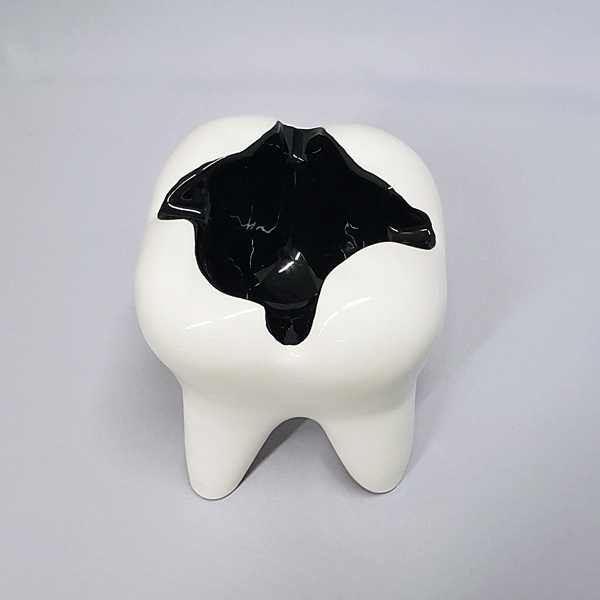 虫歯をモチーフにした小物入れ。