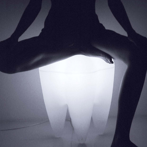 歯の形をした風変りなフロアランプです。座ることもできます。