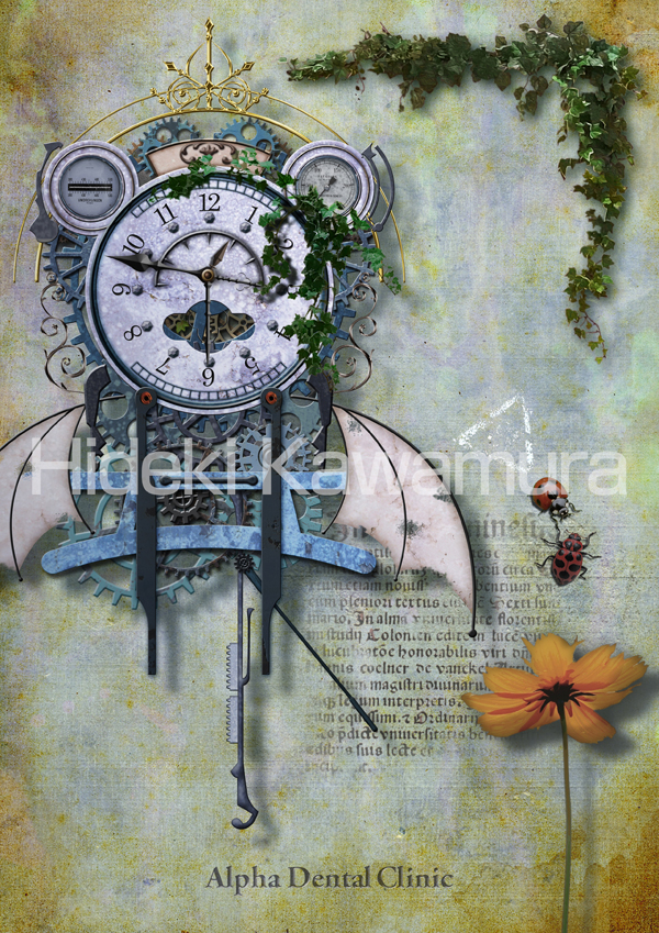 程よいサイズで場所を選ばす飾ることができる、ハイセンスなデジタルアートプリントです。絵画の中にオーダーメイドで医院名等の刻印ができ、時計の時刻もお好きな時刻に変更できます。シンプルな木製の額に入れてお届けします。